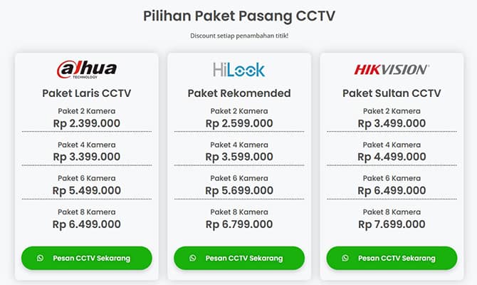 Kami menyediakan beberapa paket pemasangan CCTV untuk wilayah surabaya,yang dimana anda bisa pilih sesuai dengan kebutuhan anda